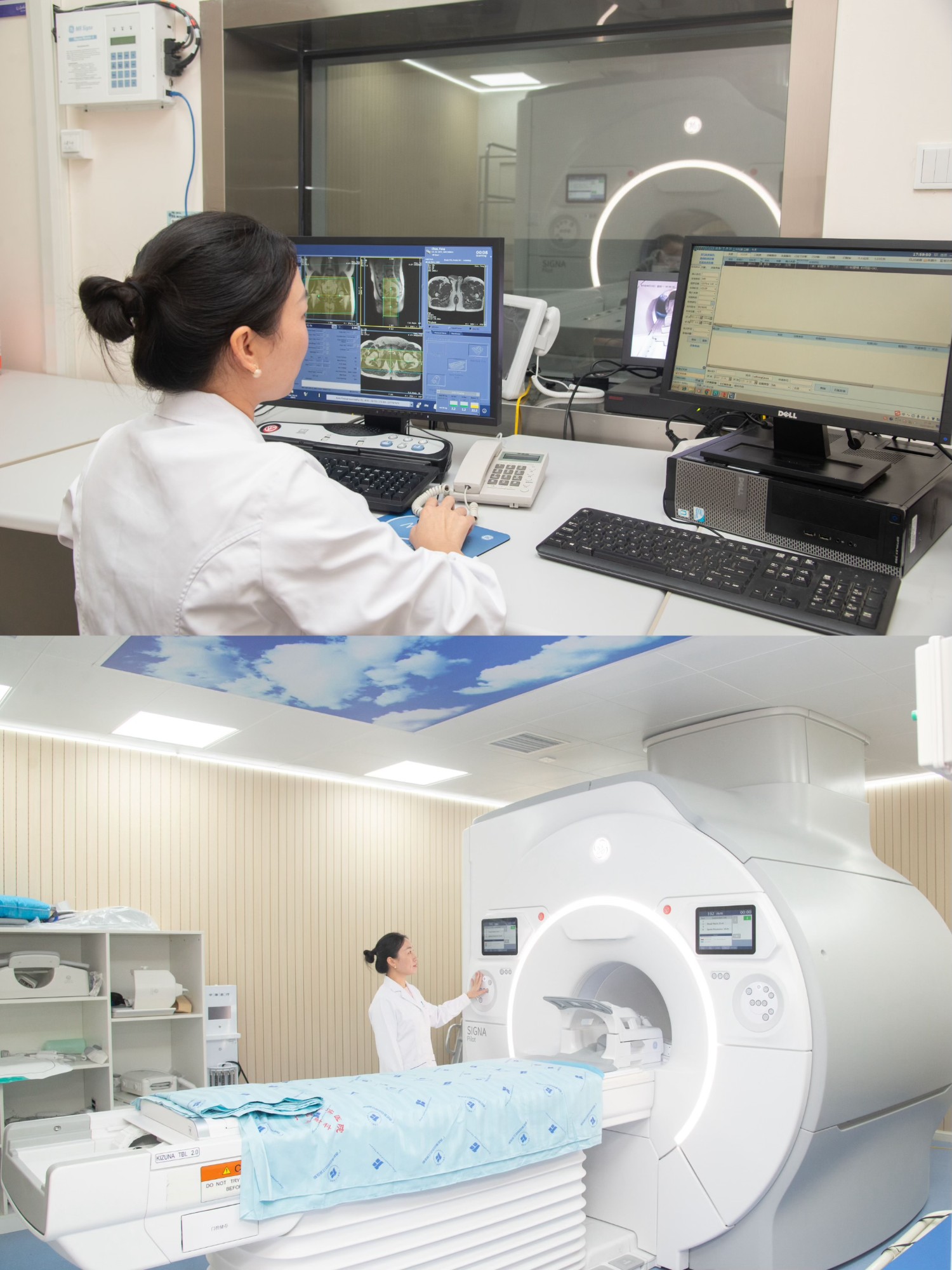 配备设备:1台3.0T磁共振、1台1.5T磁共振、1台256排高端螺旋CT、1台64排螺旋能谱CT、1台64排双源CT、2台DR、1台全身骨密度仪、1台乳腺钼靶、1台数字胃肠机、3台移动DR。科室采用PACS系统(影像归档和通信系统),与医院的HIS、RIS等系统进行融合、连接,实现影像资料与临床科室的同步传输,实现云影像服务的本地化部署及手机终端查阅,同医联体单位实现远程图像及报告传输,为医联体、乡镇卫生院、社区医院等提供远程影像诊断服务。
