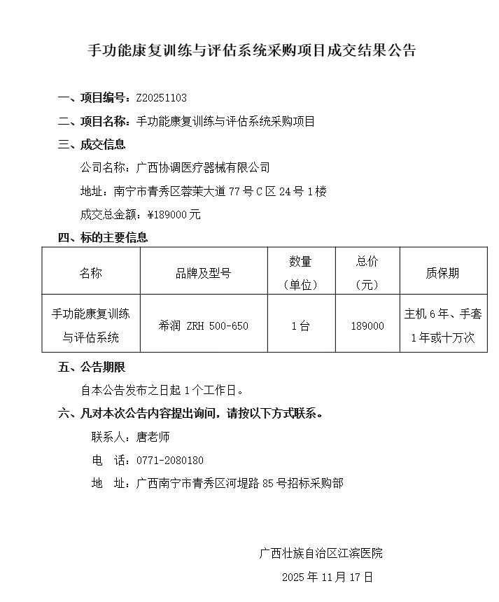 20251117成交结果公告(手功能康复训练与评估系统采购项目)