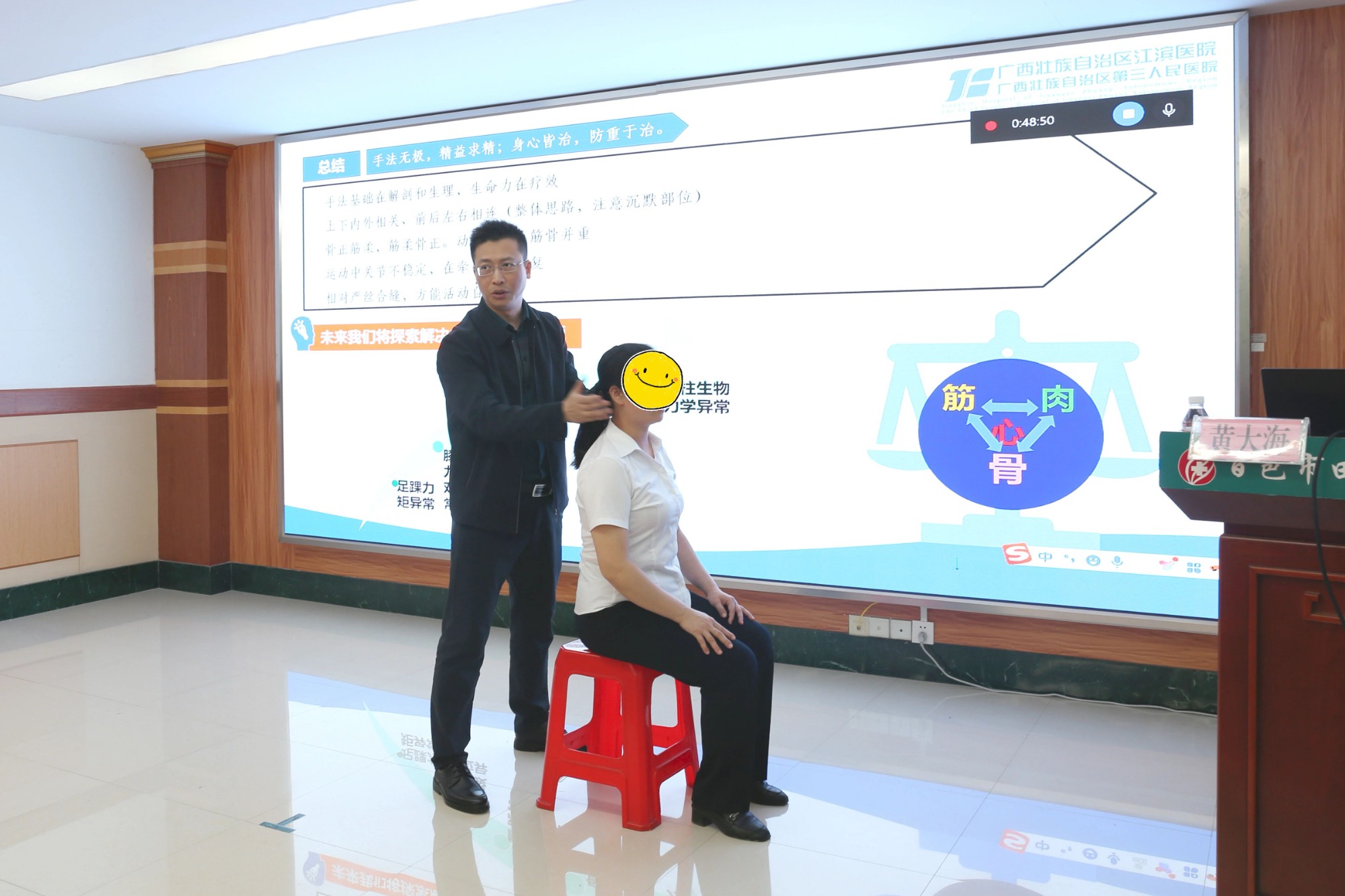 下午,广西江滨医院黄大海、郑立、黄海清、李超文等专家分别就《正脊减张(CSRT)技术的研究进展与展望》、《以系统气道管理为核心-脑卒中后肺部感染患者的康复抓手》、《关爱老人,防范误吸》和《前列腺增生诊疗进展》进行主题讲座。