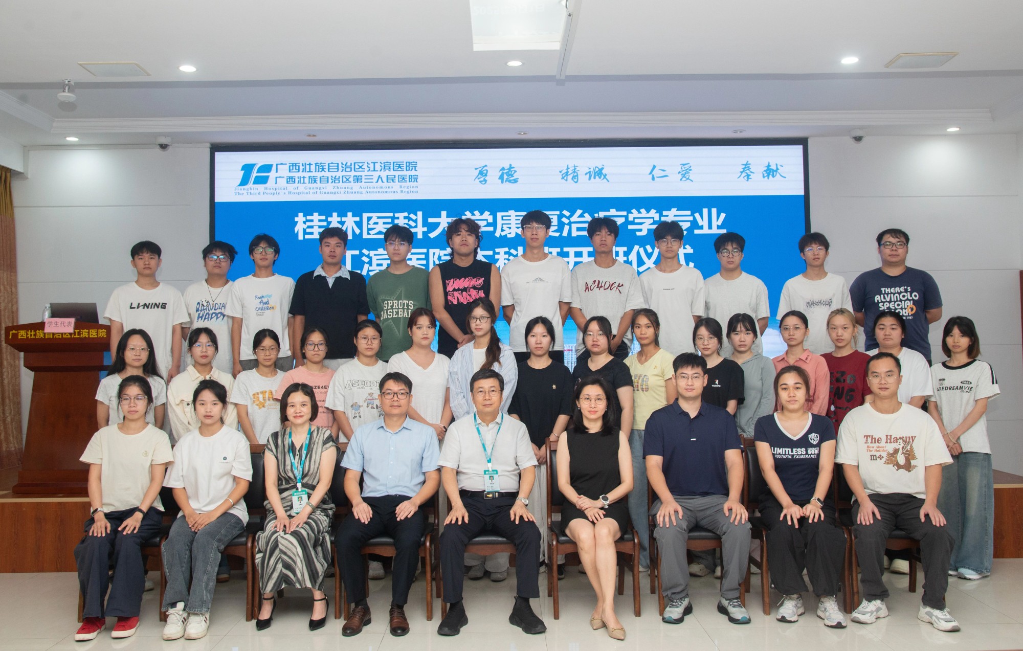此次获奖,是对广西江滨医院与桂林医科大学共同培养的江滨康复班教学成果的充分肯定。江滨康复班是我院首次承办的大学本科教学班。该班30名学生均来自桂林医科大学2023级康复治疗学专业本科班,他们已在校完成大一、大二学年学习,自大三起转入广西江滨医院,同步开展理论学习与临床实践。