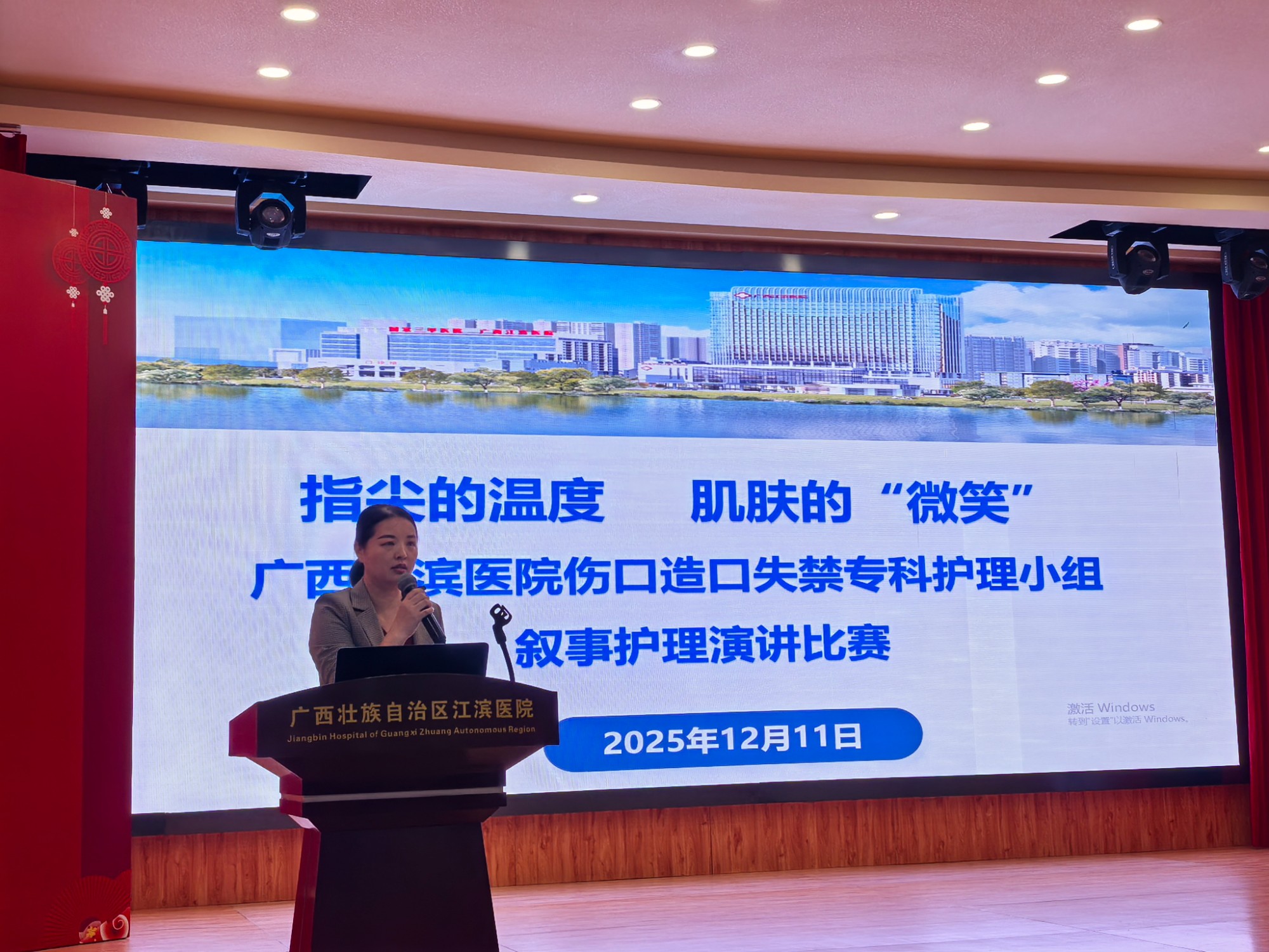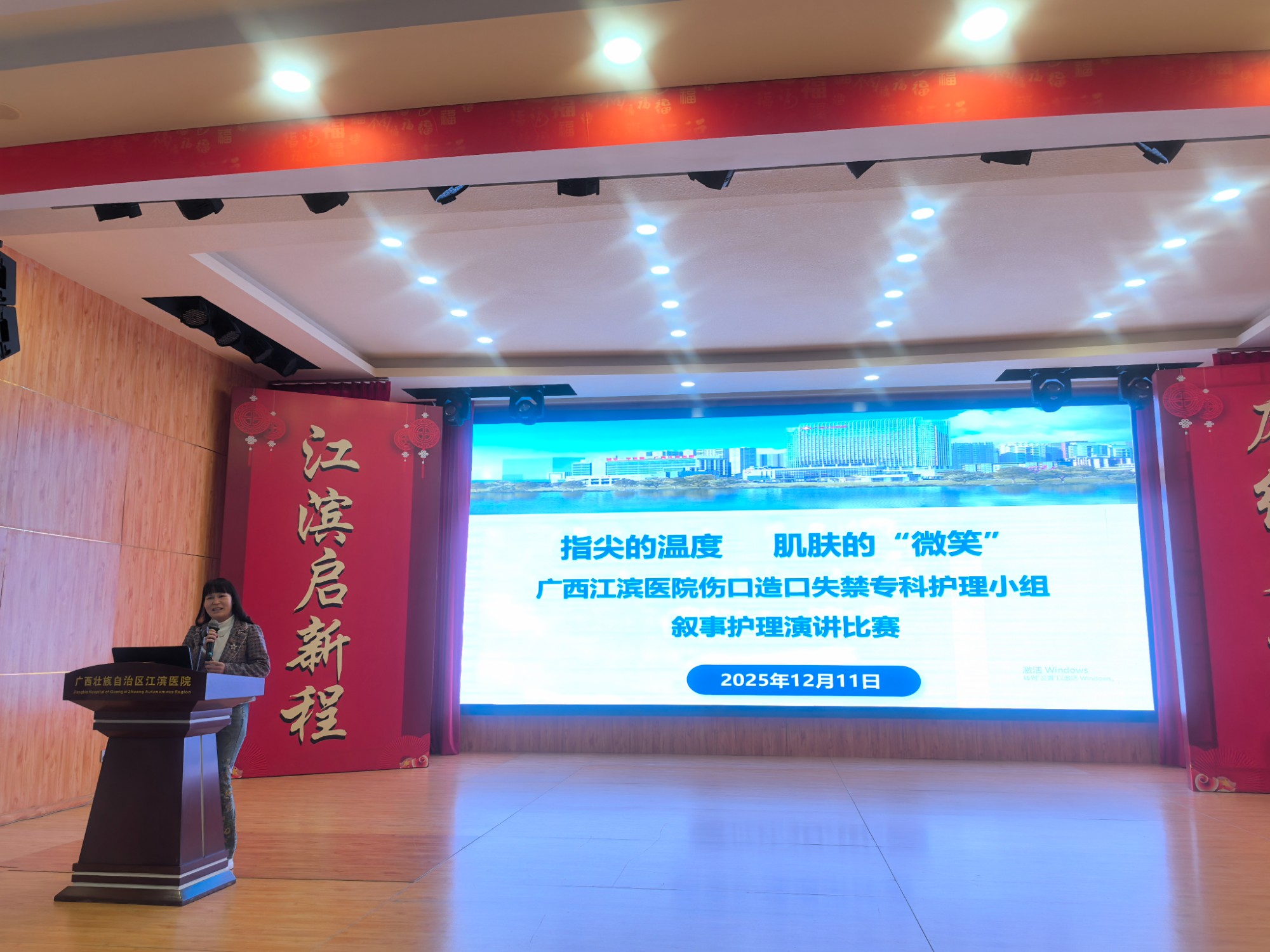 为进一步深化优质护理服务,推动叙事护理在伤口造口失禁专科的临床实践与创新,全面提升护理人员的人文关怀与沟通能力。广西江滨医院(自治区第三人民医院)伤口造口失禁专科小组于12月11日成功举行举办《指尖的温度,肌肤的“微笑”》叙事护理演讲比赛。比赛旨在分享护理工作中那些平凡又动人的瞬间,让温暖被听见,让感动被铭记。