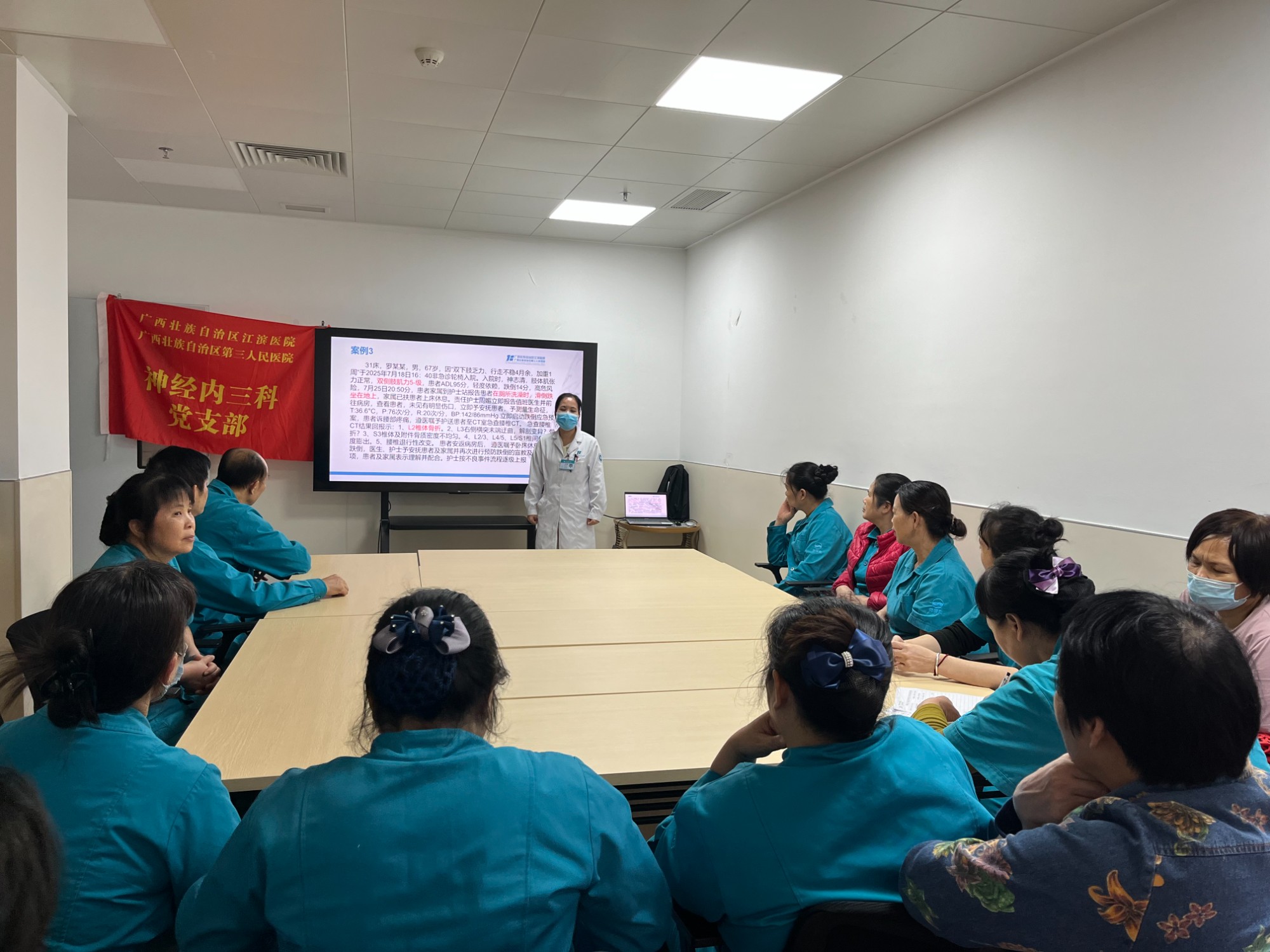 随着人口老龄化加剧,老年人跌倒已成为影响晚年生活质量的重要安全隐患。为切实筑牢老年人安全防护网,近日,广西江滨医院(自治区第三人民医院)神经内三科党支部以“365安全护航”为主题,通过案例分析、情景模拟、互动宣教等多元化形式,开展老年人跌倒预防及应急自救健康宣教活动,用专业力量为老年朋友的安全出行与健康生活保驾护航。