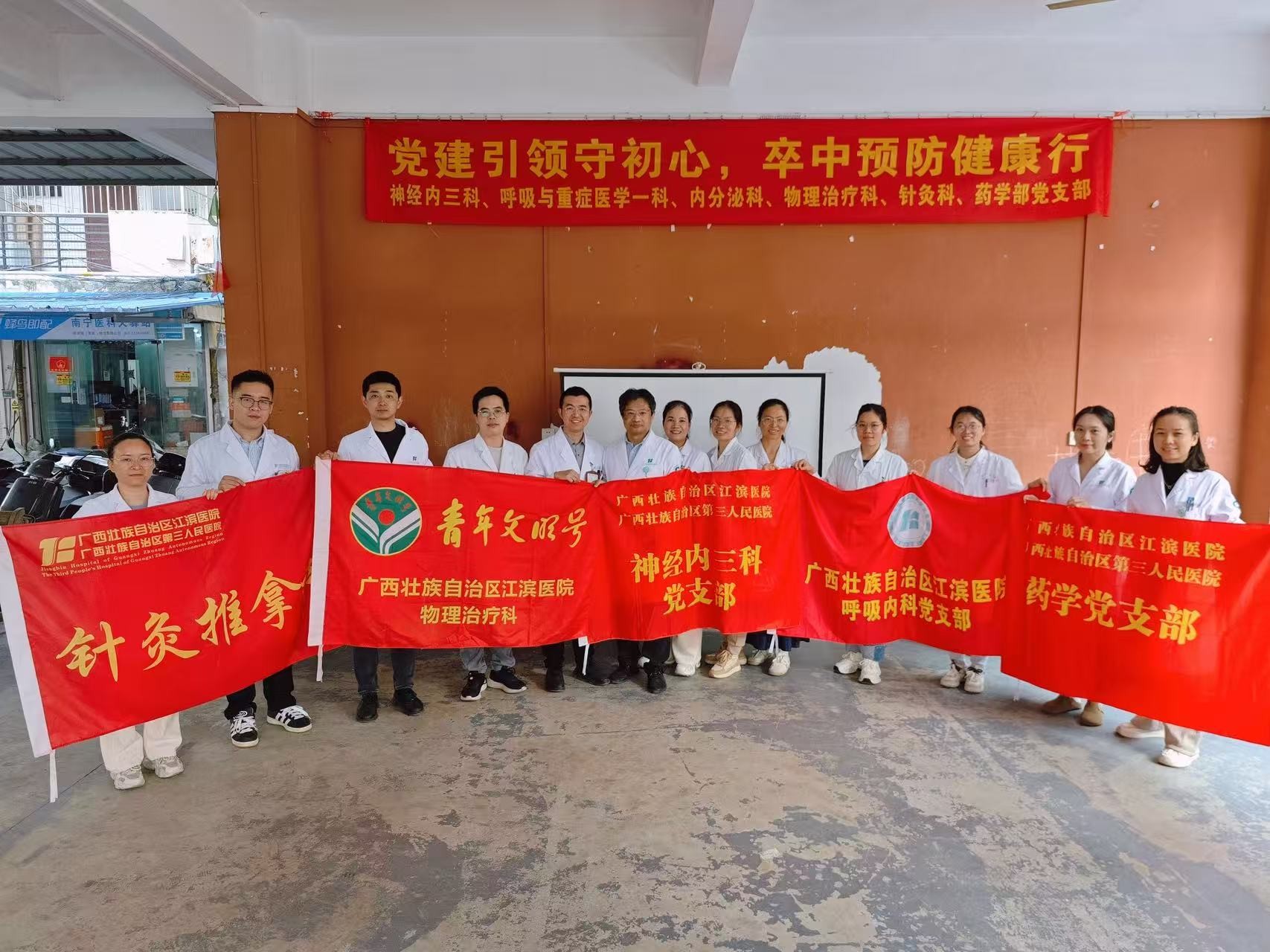 为推动“主动健康”工程深入基层,把优质医疗服务和健康知识送到村民身边,近日,广西区江滨医院(自治区第三人民医院)神经内三科、呼吸与重症医学一科、内分泌科、物理治疗科、针灸科及药学部党支部联合组织的义诊团队,前往南宁市青秀区新兴村开展“党建引领守初心,卒中预防健康行”宣教义诊活动,活动圆满落幕。