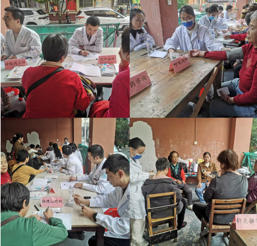 义诊区里,各科室专家分工协作,神经内三科、呼吸与重症医学一科、内分泌科专家为村民进行基础疾病问诊、病情评估;物理治疗科专家及针灸科专家现场为有需求的村民提供康复指导和针灸体验;药学部专家则为村民讲解合理用药知识,纠正用药误区。专家们细致的诊疗和贴心的服务,用专业为新兴村村民的健康保驾护航。